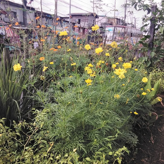 In the middle of busy highway Under a footbridge ia an island made into an urban farm hello to all of you ka urban we have a new things today here we have cosmos so if possible that we can integrate bee keeping here we are ready we also have new crops this is called madre de agua the moringa that we planted last time has develop new sprout already we also have citronella and the growth of this moringa are good this is the fruit of naga pepper came from bicol the plants are so lush green we also have mulberry and don’t forget our native plant papaya we also have improvised rain catcher here we just folded the end side of this tent so when it rains it catches rain water our five-leaved chadte tree is growing very well to those who use this as herbal supplement just visit us here in Kaunti and i will give you some